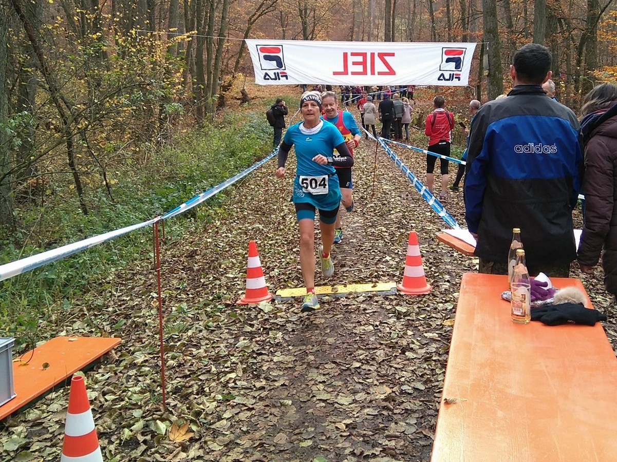 Als ich dann auf der Laufstrecke war, fand ich auch sofort wieder Gefallen daran. Die 4,5 km waren bald gelaufen und ich wechselte aufs MTB. Da nur 13 Kilometer zu fahren waren, zog ich auch keine Fahrradschuhe an, sondern stieg einfach aufs Rad. Den Helm setzte ich natürlich auf. Es waren steile Waldpassagen dabei, aber nicht technisch. Lediglich ein längeres Downhillstück hatte sehr weichen kieseligen Untergrund. Hier verlor ich viel Zeit und einige andere Athleten, die ich bergauf oder beim Laufen überholt hatten, fuhren nun an mir vorbei. Am Ende auf der Laufstrecke konnte ich 2 Männer wieder einsammeln und dann war das Rennen auch schon wieder vorbei.