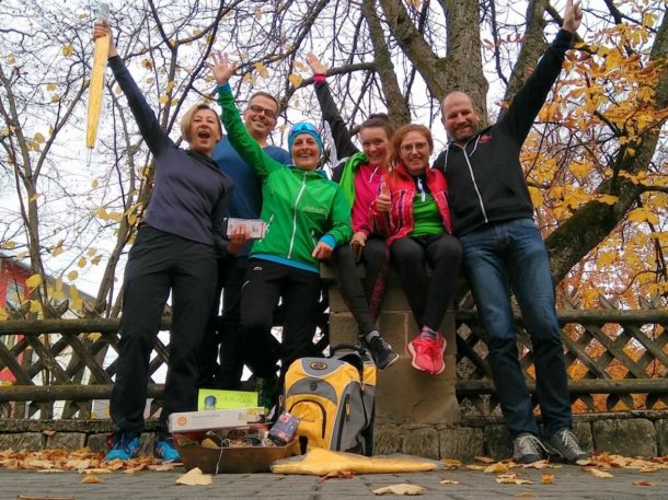 Im Vorfeld sagte man mir, dass man diesen Lauf mit meinem eigenen Silberhüttentrail vergleichen könnte. Völlig ohne Ambitionen ging ich an den Start, das Wetter war, wie in diesem Herbst schon fast an der Tagesordnung, sonnig und warm. Ich reihte mich weiter hinten ein, weil ich lieber überholte als überholt zu werden. So lief ich ein entspanntes Rennen von Anfang an. Irgendwann traf ich auf Ranzl für den dieses Event wie gemacht war. Hier hießen die Verpflegungsstationen nämlich ausdrücklich Genussstationen. Und dies durfte sich unser Markus nicht entgehen lassen. So lief ich dann irgendwann voran, weil ich nicht soviel Hunger verspürte.