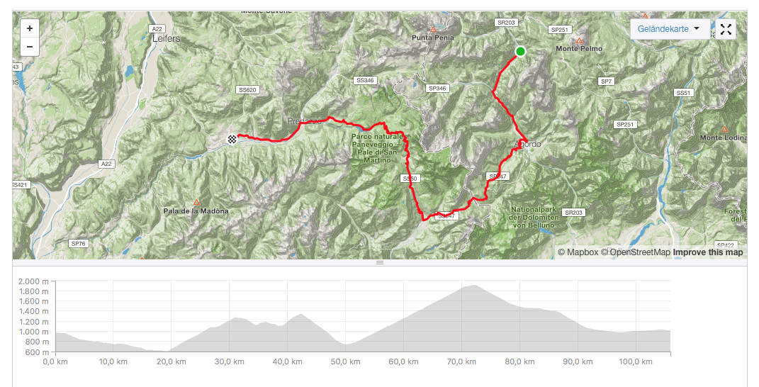 Nach 106 Kilometern und 2234 Höhenmetern kamen wir unfallfrei nach guten 6 Stunden in Cavalese an. Endlich gab es heute auch die heißersehnte Pizza 😉