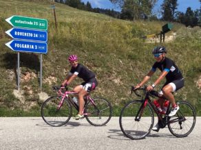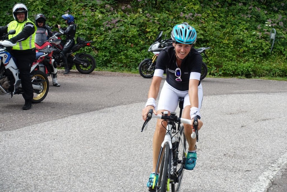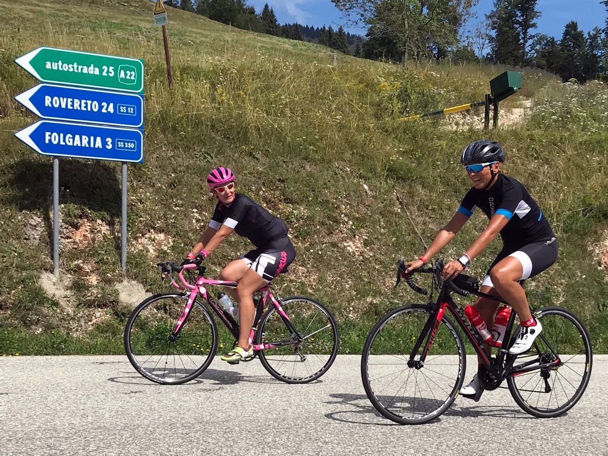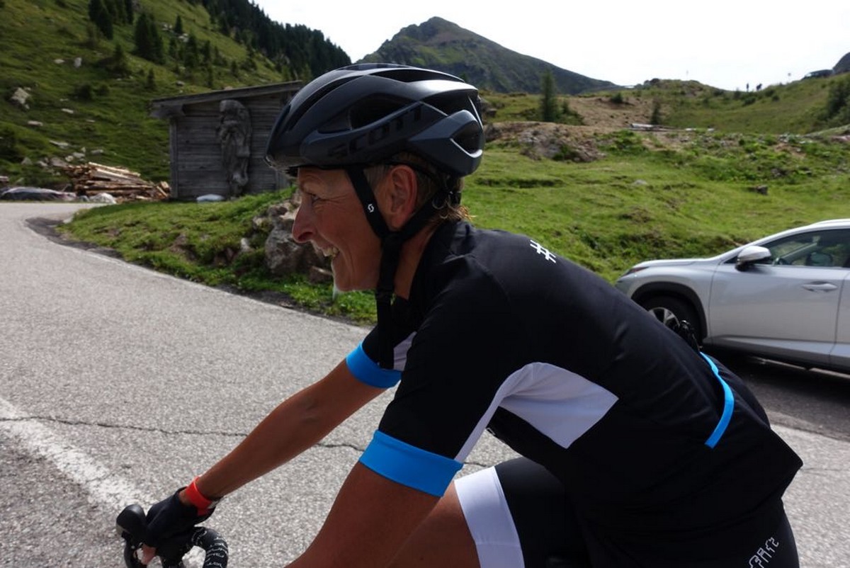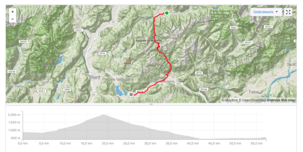Etappen 5 und 6 warteten nicht mehr mit so vielen Höhenmetern auf und ich dachte schon an die „gmahte Wiesn“! So startete ich guter Dinge in die 5 Etappe, die über den Manghenpass Levico Terme führte. Es stellte sich heraus, dass gerade die zweiten 8 Kilometer des 16 Kilometer langen Passes sehr, sehr anstrengend waren. Ständige Steigungen von 9-10 % und keine Gelegenheit zum Verschnaufen lautete das Motto dieses Passes. Uiuiui, langsam merkten meine Beinchen dann doch die Belastung der letzten Tage. Nach Stärkung auf der Passhöhe ging es dann aber auch schon wieder hinab und auch wenn ich beim Bergabfahren die Langsamste war, so gewann ich doch mehr und mehr Sicherheit im Bergabfahren.