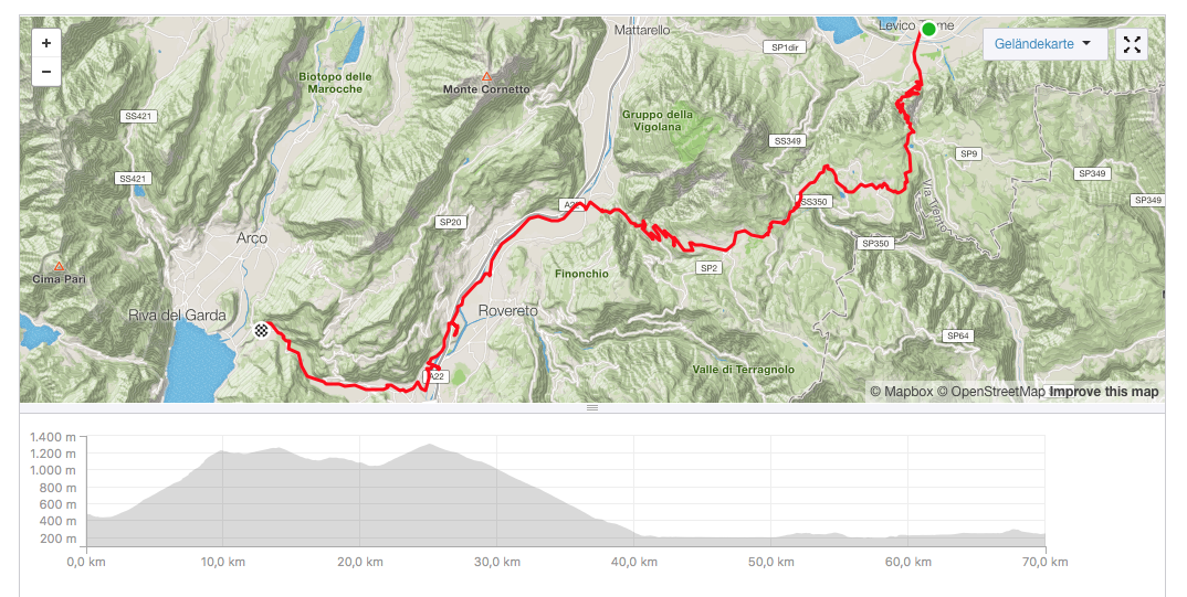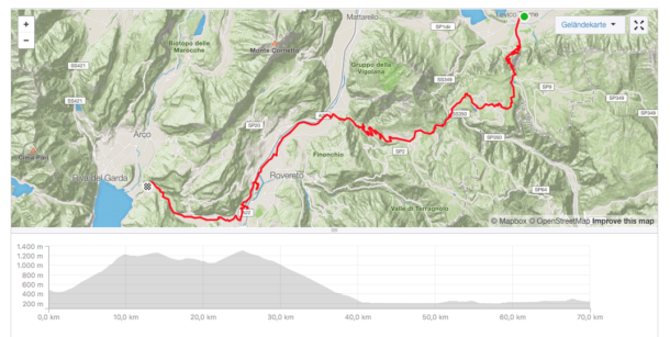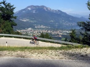 Aufgrund seiner unregelmäßigen Steigungen verlangte der letzte Tag noch einmal, dass ich die Zähne zusammenbiss. Auch die Tatsache, dass ich es hier teilweise recht eng zuging, machten die Sache nicht einfacher. Aber Jammern hilft nix, ich kurbelte dennoch hoch zur Passhöhe und genoss aber trotzdem dazwischen die grandiose Aussicht nach Levico Terme. Der Weg nach Torbole führte dann meist auf guten Radwegen flach nach Torbole. Nach dreieinhalb Stunden kamen wir in Nato Torbole an.