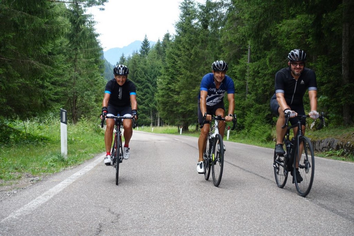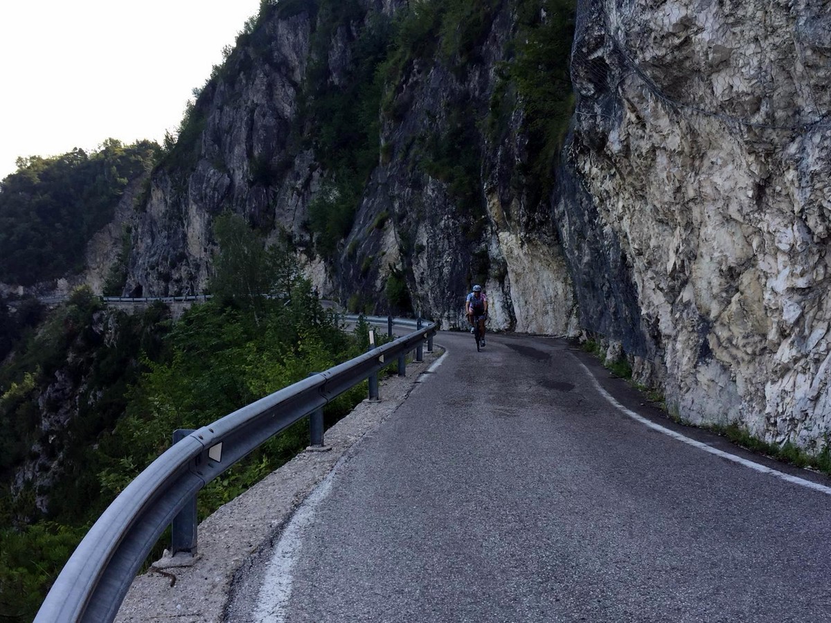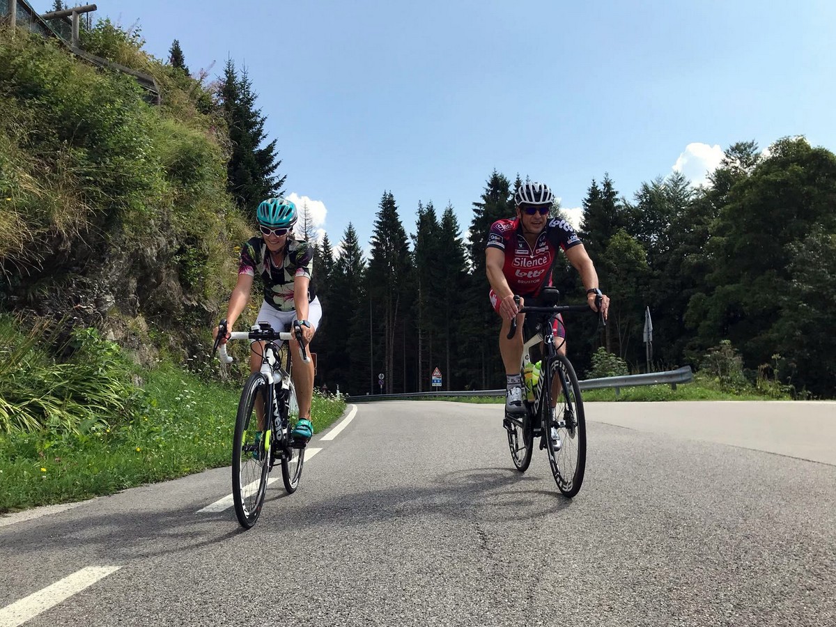Auf der 4. Etappe kam der für mich schönste Pass der ganze Tour. Auf dem Weg von Alleghe nach Cavalese musste der Passo di Rolle mit 22,1 Kilometern passiert werden.