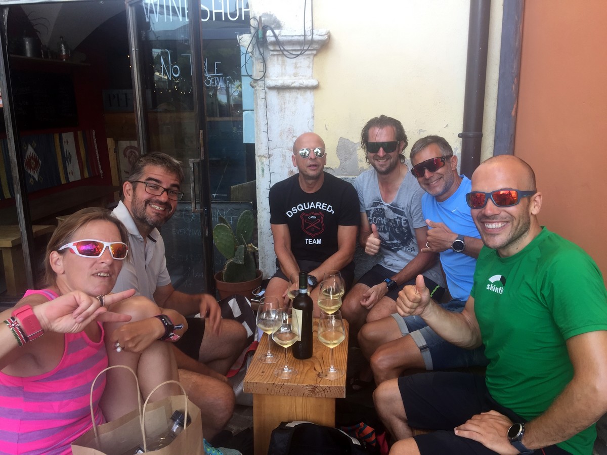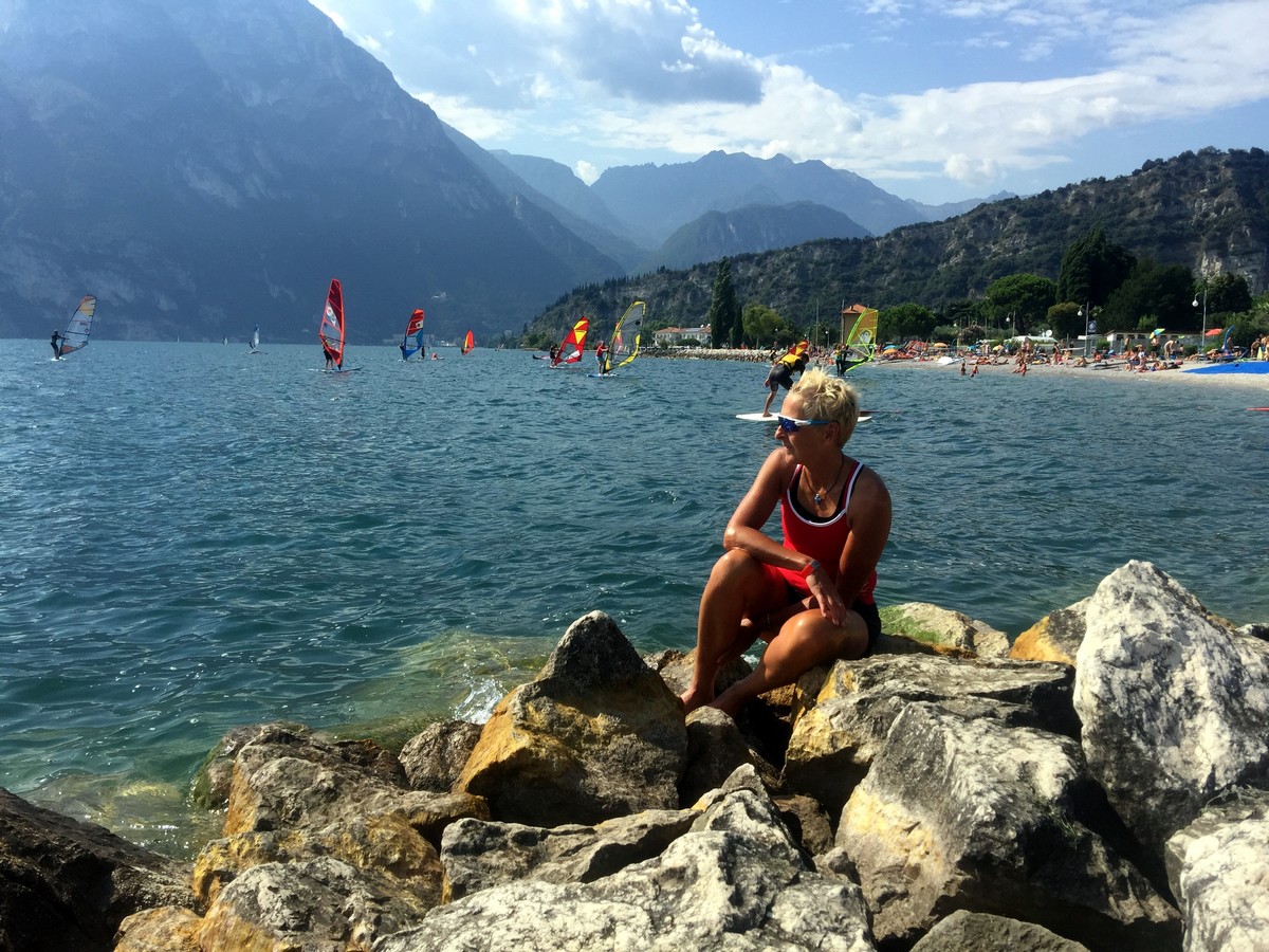 Für das obligatorische Bild am Gardasee nahmen wir dann den Bus hinunter nach Torbole. Nach gemeinsamem letzten Abendessen in Torbole ließen wir heute den Abend in einer Lounge Bar direkt am Lago ausklingen. Ein Shuttlebus holte uns am nächsten Morgen direkt vom Hotel ab und zurück ging es nach Kaprun. Schon war der Transalp wieder Geschichte. Hatte ich zuhause noch gehofft, jede Etappe mitfahren zu können, bin ich jetzt hocherfreut, dass alles so gut geklappt hat. Das Einzige was nach diesen 6 Tagen immer noch weh tut, ist der Hintern 😉