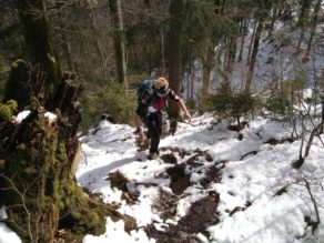 Bestens gelaunt wurden wir nach zweieinhalb Stunden und neun Kilometern in eine Berghütte zur Brotzeit eingeladen. Ein super leckeres kaltes Buffet wurde für uns bereits vorbereitet und so mussten wir uns nur noch ein Plätzchen suchen, bevor wir schlemmen durften. Nach dieser hervorragenden Stärkung mit genügend Zeit zum Austausch untereinander, wer welche sportlichen Ziele in diesem Jahr noch verfolgt, hieß es trotzdem bald wieder, Abschied nehmen von dieser urigen Hütte.